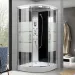 Dimenzije: 90x90cm Visina: 220cm Unutrašnja visina: 196cm Vrata - kaljeno staklo 5mm Leđa - kaljeno staklo 5mm, crna obrada 6 mlaznica Prebacivač, tuš ruža, tuš ručica, tuš crevo Dimenzije ogledala: 29x21cm Dimenzije etažera: 25x10cm Zvučnik, ventilator, rasveta Aluminijumske lajsne, hrom ručice Dvostruki točkići u obe zone 4x2 Tuš kadica bez skidajuće obloge, ravan pod - Dodatne informacije