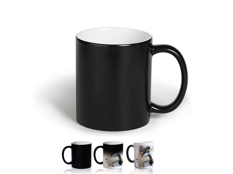 Magične šolje za sublimaciju koje menjaju boju kada se napune vrelom tečnošću, pa će se onda odštampani logo videti ispod obojenog sloja. Izbor boja osnove: crna. Dimenzije: Ø 8cm, visina 9.5cm Raspoloživa dimenzija štampe: 20 x 8.5 cm (cela bočna površina) - Additional Information