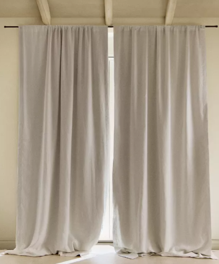 Draperija izrađena od lana sa blackout postavom, koja efikasno blokira spoljašnju svetlost, pružajući tamu i veću privatnost. Idealne su za spavaće sobe ili bilo koji prostor u kojem je potrebno kontrolisati osvetljenje. Na poleđini imaju traku za karike i provlačenje kroz garnišnu.