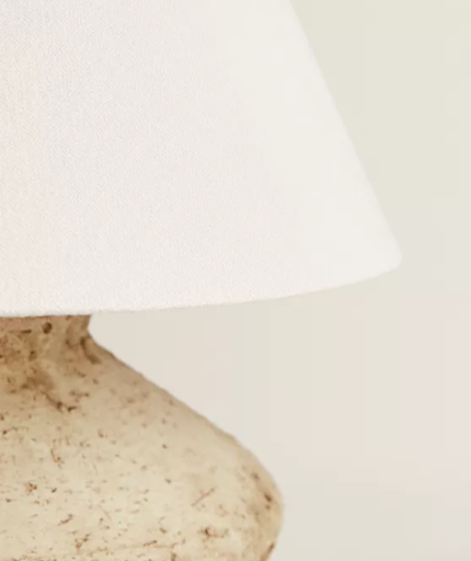 Lampa srednje veličine sa keramičkim postoljem i lanenim abažurom.