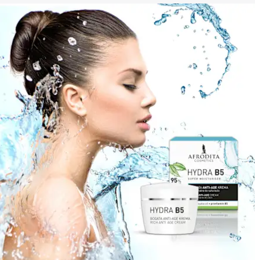 AFRODITA HYDRA B5 bogata anti-age krema za lice je bogata hidratantna krema za normalnu - suvu kožu. Intenzivno negujuća formula s provitaminom B5 i devičanskim, hladno ceđenim uljem jojobe, za vidljivo glađu, mekšu i elastičniju kožu. Obnavlja zalihe vlage i hranljivih sastojaka, štiti od isušivanja, ima anti-age efekat. AFRODITA HYDRA B5 krema za lice oduševljava svilenkastom kremastom teksturom koja ne ostavlja masne tragove na koži i ne zatvara pore. - informacije