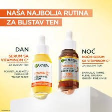GARNIER Vitamin C BRIGHTENING serum za lice koncentrisan je sa 3.5 % vitamina C*, a sadrži još niacinamid i salicilnu kiselinu. Formulacija pruža blistavost, ujednačava ten i ublažava tamne fleke za samo 6 dana. Dokazana efikasnost nakon samo 3 dana korišćenja. Koža deluje ujednačenije i glađe. Spoj dermatološki aktivnih sastojaka [VITAMIN C* + NIACINAMID + SALICILNA KISELINA] poznat je po tome što ublažava tamne fleke, a ekstrakt limuna odabran je zbog svojih dobro poznatih svojstava u posvetljivanja kože lica. *Vitamin C = derivat vitamina C.