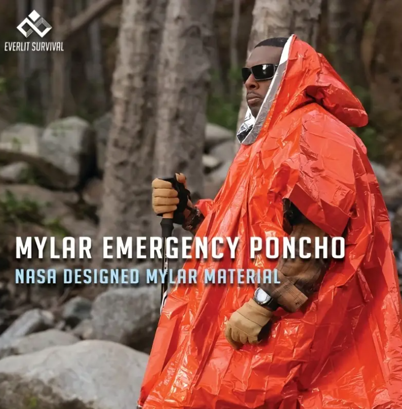 23Ova termo kabanica – pončo izrađen od izdržljivog Mylar materijala, razvijenog za potrebe NASA programa, predstavlja nezamenjivu opremu u svakoj outdoor torbi za hitne situacije. Zahvaljujući aluminizovanom premazu, pončo reflektuje do 90% telesne toplote i štiti telo od hipotermije, vetra i kiše. Lagan je, kompaktan i vodootporan, a istovremeno se lako oblači preko odeće i rančeva. Njegova narandžasta boja pruža visoku vidljivost u divljini, dok široka kapuljača i produženi rukavi omogućavaju pokrivenost bez ograničavanja pokreta.