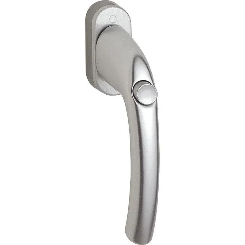 Ručica za prozor sa dugmetom — moderni i sigurni dodatak za otvaranje i zatvaranje prozora, posebno dizajnirana za sisteme tipa „tilt & turn” ili klasična krilna otvaranja. Dugme služi kao dodatni sigurnosni element: ručica se može okrenuti tek nakon pritiska dugmeta, što sprečava slučajno ili neželjeno rukovanje. - Dodatne informacije