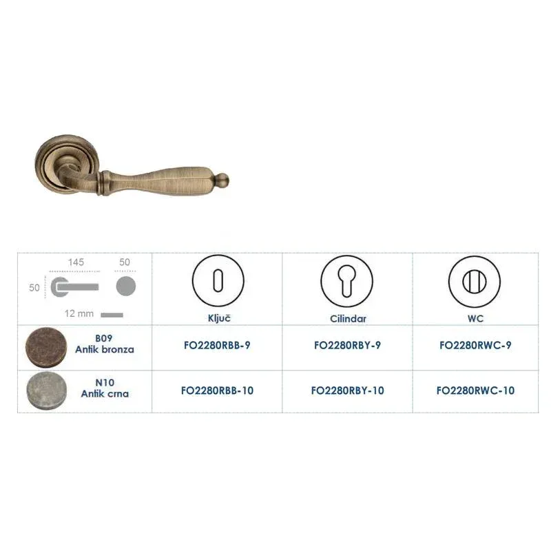 Camilla set podseća na srednjovekovne dvorce, priuštite sebi duh starih vremena i nemerljiv luksuz. Kvaka je napravljena za unutrašnja vrata. Proizvedena na po standardu Ecotech tehnologije. Garnitura sadrži: kvake, gornje rozete sa plastičnom podrozetom i povratnim mehanizmom, donja rozeta sa otvorom za ključ, cilindar ili wc, četvrtku kvake, reducir sa 8 na 9 mm, šrafove za skriveno šrafljenje. - Dodatne informacije