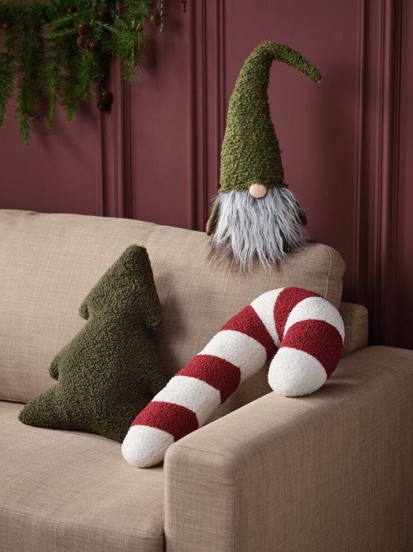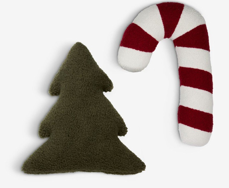 Ukrasni jastuk sa zabavnim, prazničnim božićnim oblikom. Izaberite između jelke ili šećernog štapa. Idealan za dodavanje razigrane note sofi ili fotelji. Dostupan u raznim dizajnima. 36x41 cm