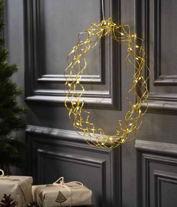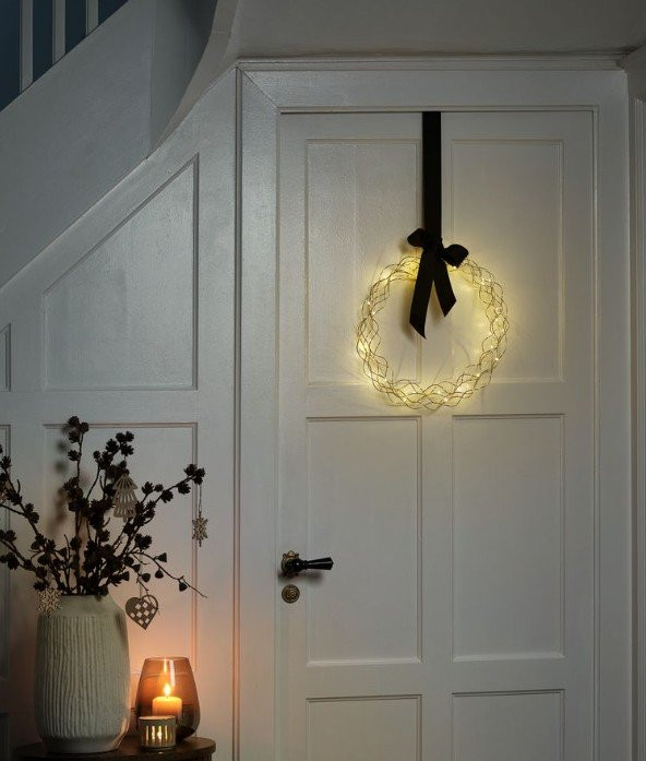 Dizajniran za unutrašnje prostore, ovaj novogodišnji venac je idealan za kaćenje na vrata, prozor ili zid.
