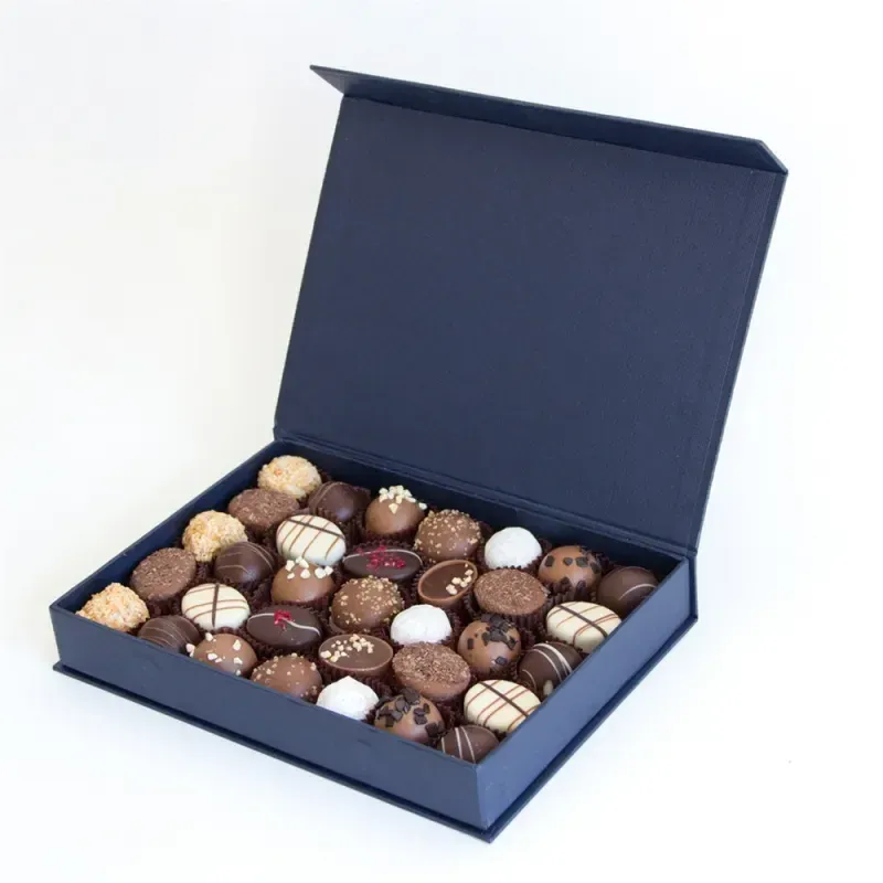 Opis proizvoda: Naše belgijske praline dolaze direktno od belgijskih majstora čokolatijera. Svaka pralina je ručno rađena i punjena različitim kremovima — lešnik, karamela, crna čokolada i voćni ganache. Kutija od 200g sadrži 16 pralina različitih ukusa, elegantno pakovanih u zlatnoj kutiji. Savršen poklon za sve posebne prilike. - Additional Information