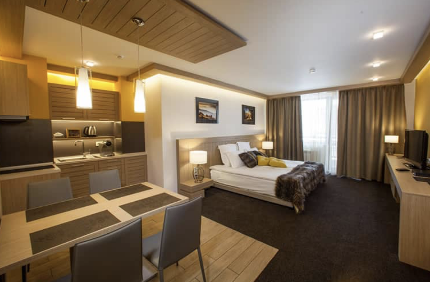 Položaj: Udaljen je oko 300m od ski lifta, a od centra oko 1,6km. Smeštaj: Sastoji se od 1 zgrade sa 4 sprata i 1 liftom. Ukupan broj smeštajnih jedinica je 62. Standard room površine oko 20m2 sadrži francuski ležaj ili dva odvojena ležaja. Studio površine oko 40m2 sadrži francuski ležaj ili dva odvojena ležaja + pomoćni ležaj. One bedroom apartment površine oko 70m2 sadrži francuski ležaj ili dva odvojena ležaja i pomoćni ležaj. One bedroom apartment lux površine oko 70m2 sadrži francuski ili dva odvojena ležaja i pomoćni ležaj (ima kamin). Svaka smeštajna jedinica ima: grejanje, TV, Wi-Fi internet (besplatno), balkon u nekim sobama, klima u nekim sobama, mini bar u nekim sobama, kupatilo sa tuš kabinom ili kadom. Hotelski sadžaj: Recepcija, restoran, 2 bara, ski depo, bazen, fitnes centar, sauna, parno kupatilo, jacuzzi, soba za opuštanje, konferencijska sala... Usluga: Noćenje sa doručkom ili polupansion (doručak i večera) na bazi švedskog stola - samoposluživanje, izbor više jela. Pića se plaćaju.