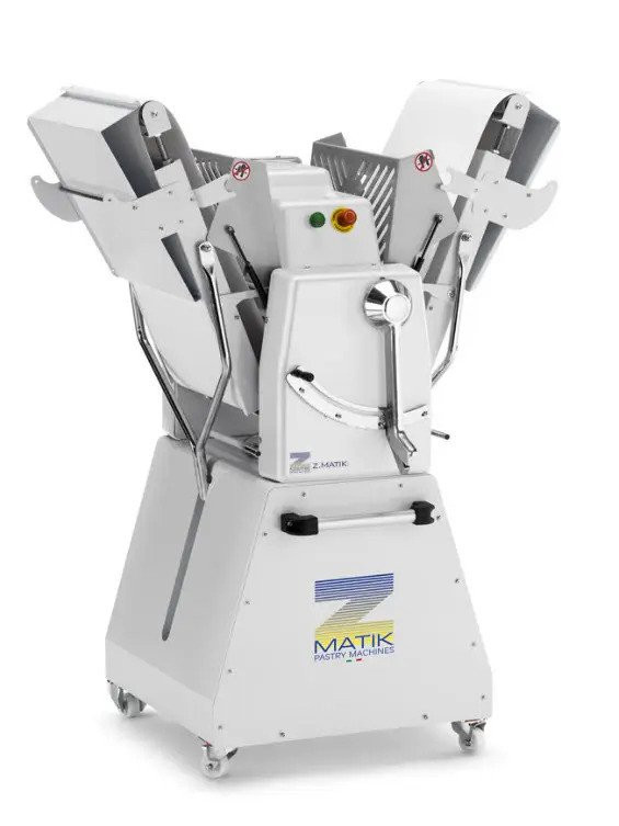 Izvanredan laminator Z-MATIC.Isporučuje se sa praktičnom i ergonomskom visećom polugom i pedalom za promenu pravca pojaseva. Queen 600’s stolovi se mogu sklopiti i lako zameniti. Njihova jaka struktura i veliki cilindri garantuju visok kvalitet performansi, pouzdanu i dugu upotrebu. Čistači kao i ostali delovi kojima je potrebno periodično čišćenje, su veoma pristupačni operateru. Mašina je opremljena površinama ispod stola i posudom za sakupljanje brašna. - DODATNE INFORMACIJE