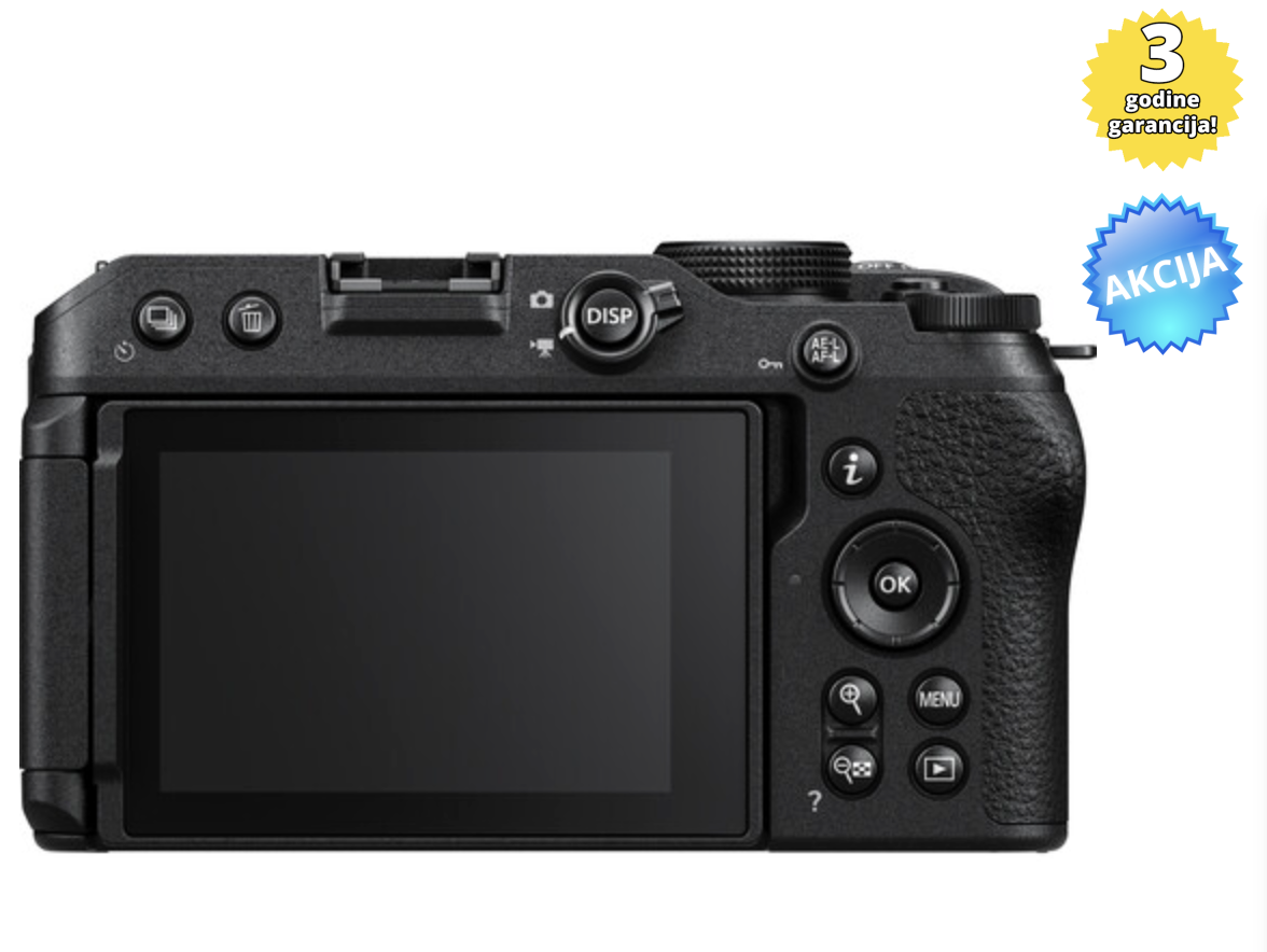 Nikon Z30 je kompaktni mirrorless fotoaparat sa APS-C senzorom od 20,9MP, dizajniran prvenstveno za vlogere i strimere. Ističe se po 4K UHD video snimanju pri 30p, optimizovanom dizajnu za vlogovanje (uključujući vari-angle ekran osetljiv na dodir i REC lampicu), naprednom automatskom fokusu sa detekcijom očiju i životinja, kao i mogućnošću povezivanja sa pametnim telefonima preko aplikacije SnapBridge.