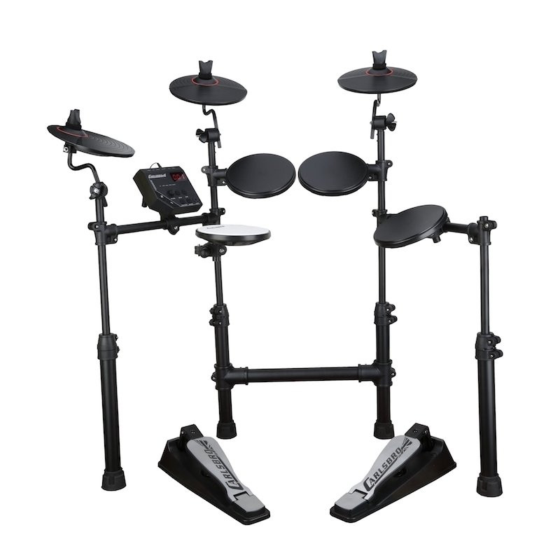 Carlsbro CSD100 je 7-dijelni bubanj elektronac koji se sastoji od Commander 100 zvučnog modula, 4 drum pada, 3 pad činele od kojih je ride sa dual zone režimom rada. Commander 100 modul sadrži 10 setova bubnja, 108 pojedinačnih zvukova perkusija, 10 demo pjesama, Line out izlaz za povezivanje na razlas, MIDI out za studijsko snimanje, aux ulaz kako bi vježbali uz omijenu muziku, a ima i ugrađen metronom sa signature, tempo i volume podešavanjem. U setu dolaze bass pedala, hi hat kontroler pedala, rack rampa stalak podesiv po visini sa 4 noge i 1 par palica.