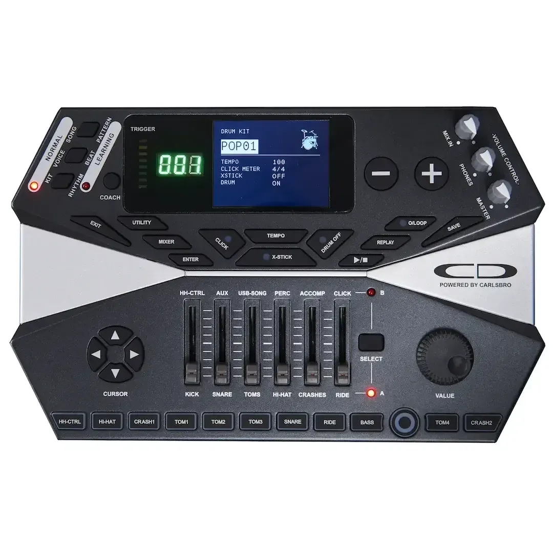 Dvozonski doboš i tomovi omogućavaju detekciju udaraca u glavu pada i u obruč, pružajući veću izražajnost u sviranju.
