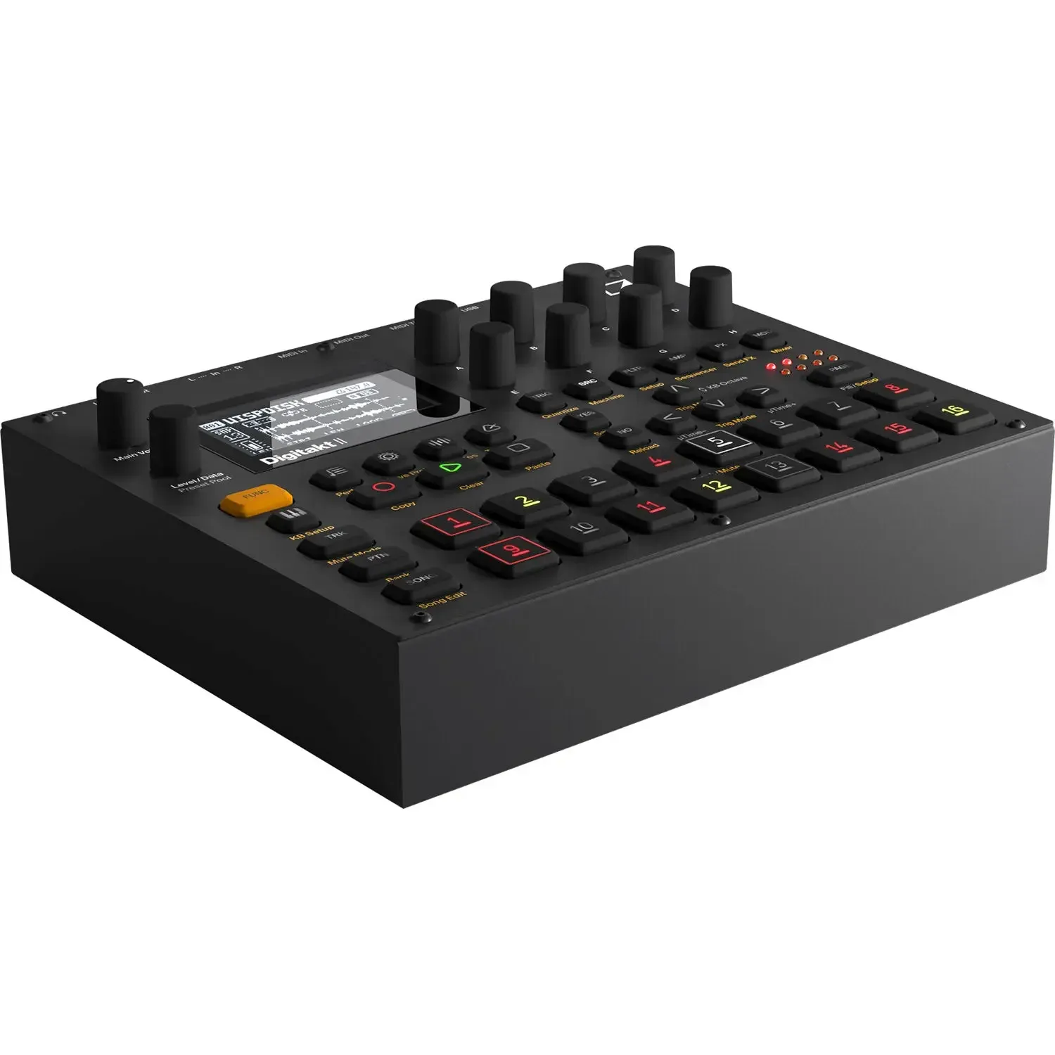 Digitakt II sada ima stereo semplove sa 16 sekvencer traka i ukupno 32 audio glasa. Možete koristiti dual mono semplove za slojevito slaganje i oblikovanje dva zvuka po traci. Mašina je ažurirana sa 20 GB memorije za semplove i 400 MB RAM-a za semplove (35 minuta stereo semplova), a svaka traka može biti konfigurirana kao MIDI traka.