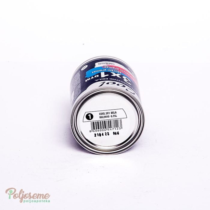 COOL 3 U 1 BELA 0.75L je temeljno-završni brzosušivi premaz za metal. Izuzetna antikorozivna svojstva, dobra athezija i visoka otpornost na vremenske uticaje. • Izradjen je od modifikovanih alkidnih veziva, specijalnih antikorozivnih pigmenata i aditiva. • Nanosi se četkom, valjkom ili prskanjem na čistu i odmašćenu površinu na temperaturi do 25°C. • Drugi sloj se nanosi max do 30 min. od nanošenja prvog sloja. • Razredjenje: Koristiti isključivo razređivač COOL 3 u 1 - Dodatne informacije