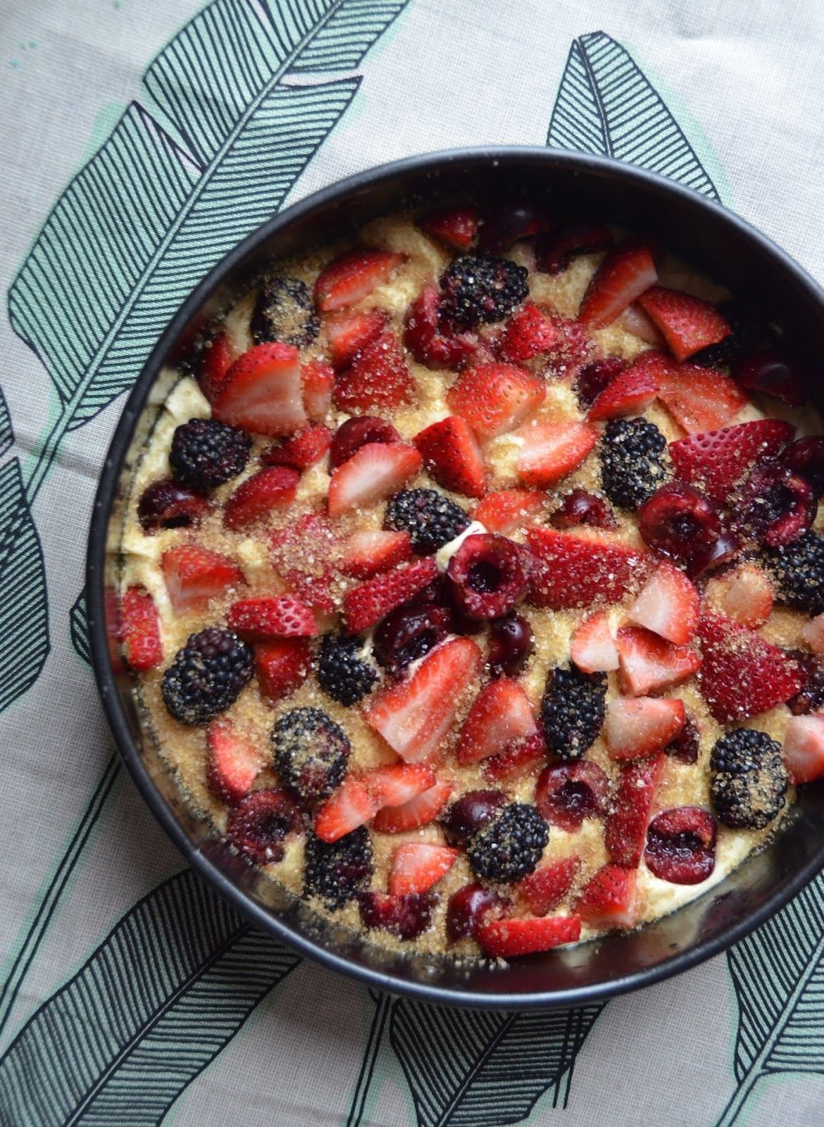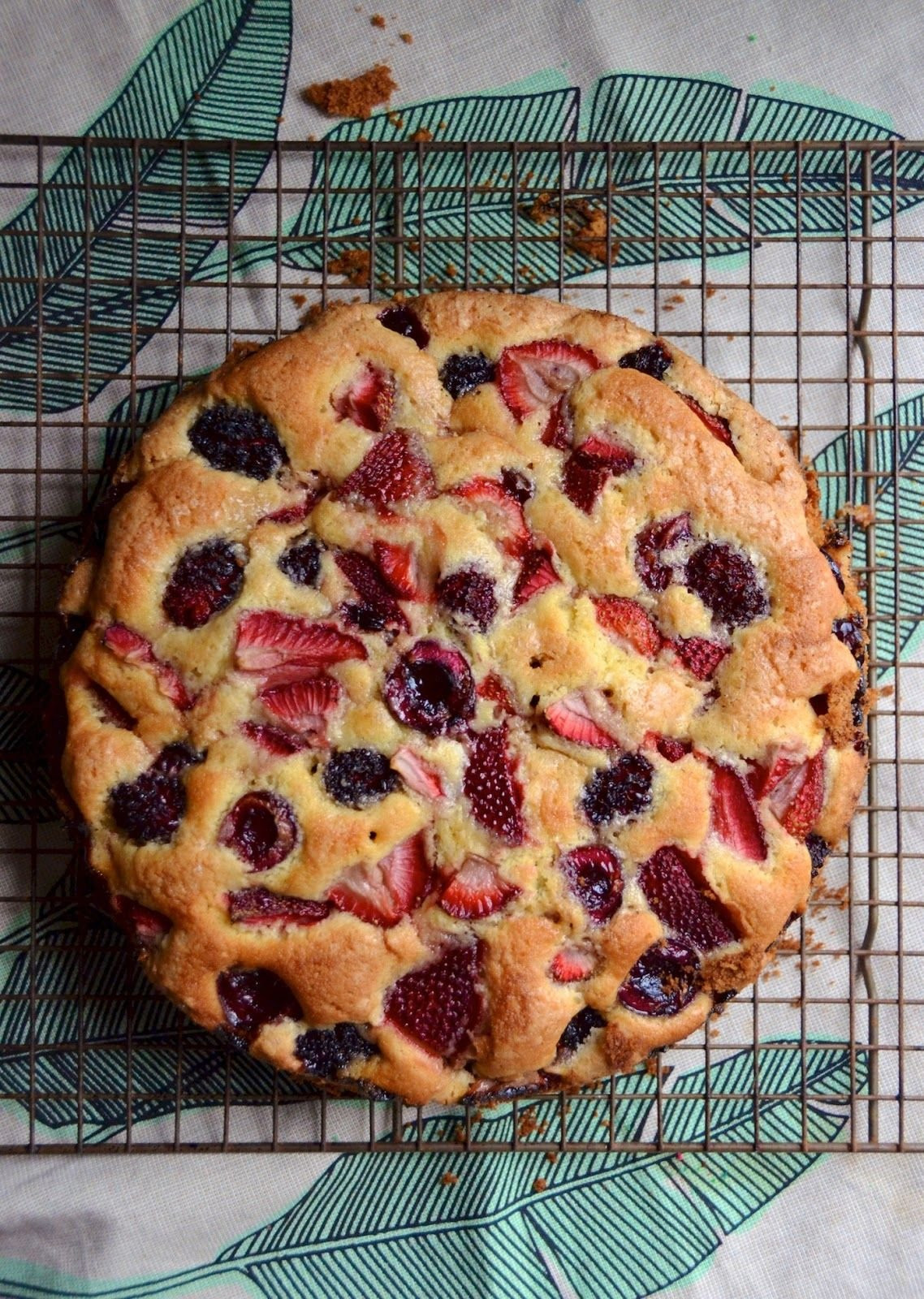 Berry Fruit Cake je sočan kolač napravljen od laganog biskvita obogaćenog malinama, borovnicama i kupinama. Svež i aromatičan, savršen je za sve ljubitelje voćnih poslastica. Odlično odgovara uz kafu, čaj ili kao desert tokom dana.