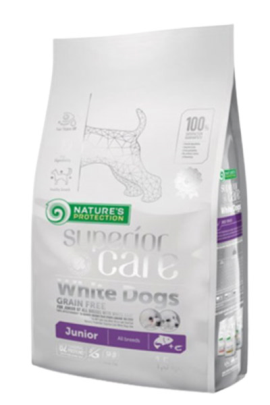 Kompletna suva hrana namenjena ishrani štenaca starosti od 3-12 meseci, bele i svetle boje dlake, koji će u odraslom dobu imati između 1kg - 10kg- Jedinstvena formula namenjena ishrani mladih pasa koja pomaže uklanjanju smeđih fleka oko očiju, njuške i na šapama koje se pojavljuju zbog neadekvatnog sastava pljuvačke i suza-Glavni izvor proteina u ovoj hrani je bela morska riba koja je lako svarljiva i hipo-alergijska- Ne sadrži pšenicu, te smanjuje rizik od pojave alergije na pšenični gluten- Prirodni anti-oksidansi – vitamin E i ekstrakt ruzmarina štite ćelije od negativnih uticaja slobodnih radikala na prirodan način Sastav: Bela morska riba 42 %( sušena i fino mlevena ), sušena pulpa krompira,s latki krompir, grašak, živinska mast, krill ( plankton arktičkih škampa ) 4%, pulpa šećerne repice, dinamički mikronizovani klinoptiolit 1%, ulje lososa, seme lana, fruktooligosaharidi ( FOS ), ekstakt juke, sušeni neven ( izvor luteina ), zeleni čajDodaci po 1kg proizvoda: Nutritivni dodaci: vitamin A (3a672a) – 18000 IU, vitamin D3 (3a671) – 1500 IU, vitamin E (3a700) – 530 mg, folična kiselina (3a316) – 1 mg, biotin (3a880) – 1 mg, gvožđe(II) sulpfat monohidrat (3b103) – 50 mg, kalcijum jod anhidrozis (3b202) – 1,5 mg, bakar(II) sulfat pentahidrat (3b405) – 5 mg, mangan sulfat monohidrat (3b503) – 20 mg, cink sulfat monohidrat (3b605) – 115 mg, natrijum selenit (3b801) – 0,1 mg. Tehnološki dodaci: ekstrakt ruzmarina, ekstrakt toferola iz biljnih ulja (1b306(i)).Uputstvo za hranjenje:Davati suvu hranu prema preporučenim dnevnim dozama iz tabele. Sveža pitka voda mora uvek biti dostupna životinjama.