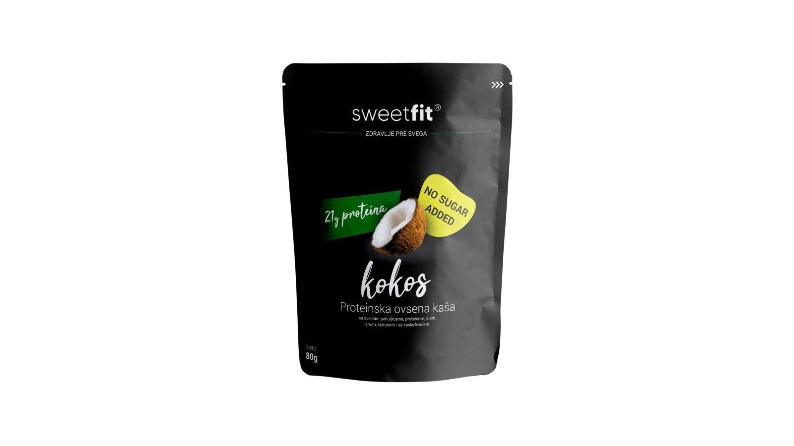 Sweetfit PROTEINSKA OVSENA KAŠA - kokos je potpuno izbalansirana proteinska kaša na bazi ovsenih pahuljica, obogaćena whey proteinom i zdravim mastima. Ne sadrži dodatni šećer i konzervanse. Pored proteina Sweetfit PROTEINSKA OVSENA KAŠA -kokos sadrži visok nivo vlakana i mali procenat šećera. Bilo da želite da smršate, dobijete mišićnu masu ili jednostavno samo da se malo zdravije hranite Sweetfit PROTEINSKA OVSENA KAŠA - kokos je tu! Idealna za doručak, užinu ili obrok posle treninga.