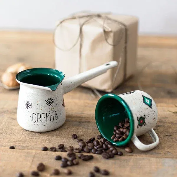 Džezva, inspirisana legendarnim ćilimom koji duboko usađuje korene u kulturnom nasleđu Srbije, predstavlja spoj klasičnog posuđa sa viševekovnom tradicijom. Idealan suvenir koji nosi duh Srbije bilo gde da se nalazite. Takođe, predstavlja poseban poklon za vaše najdraže, prenoseći im deo bogate srpske tradicije i kulture.