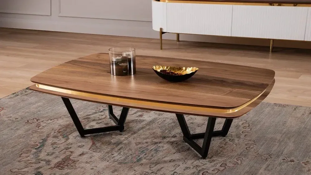 - Ploča stola je od drveta sa zlatnim detaljima
