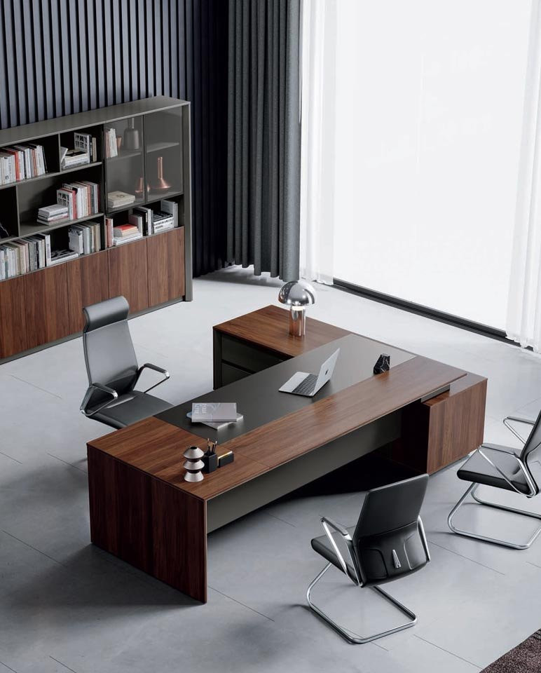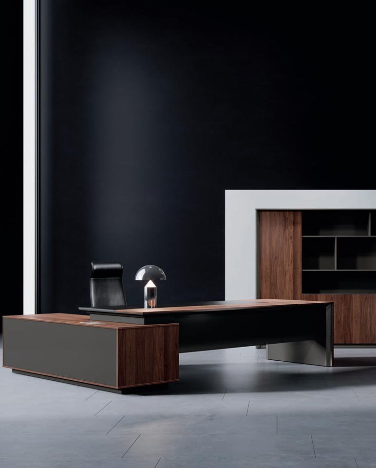 • Kolekcija se sastoji od radnog stolova "L" oblika u 3 veličine, ormara i polica, stolova za sastanke i klub stolova.
