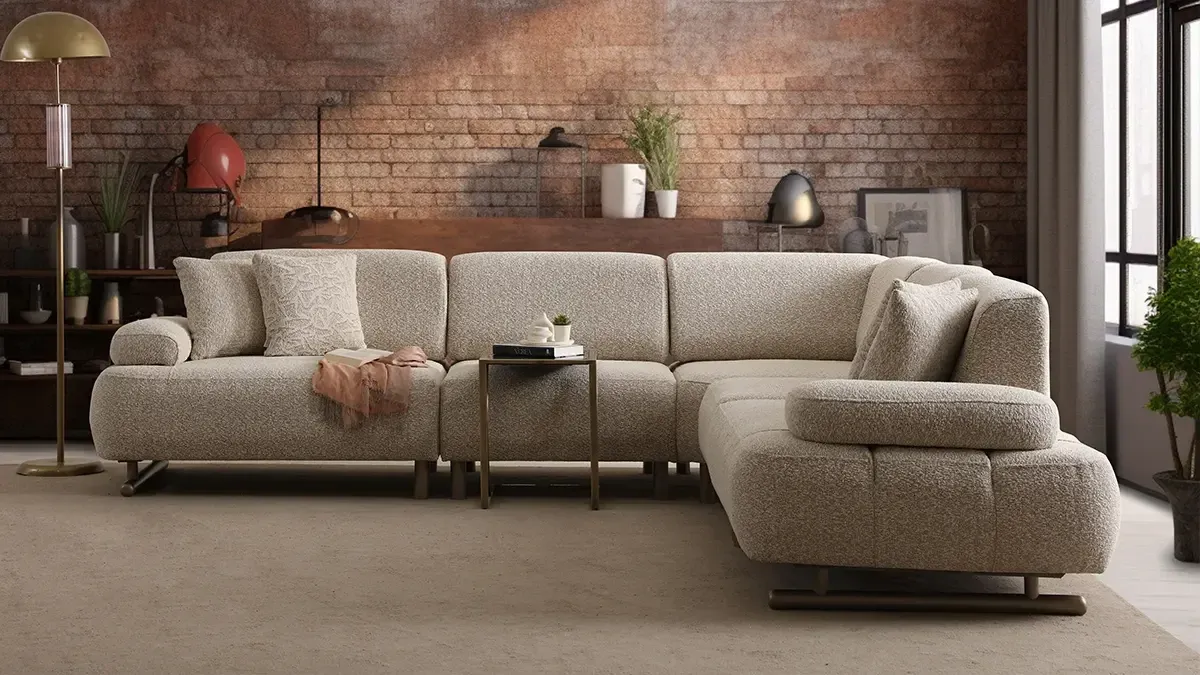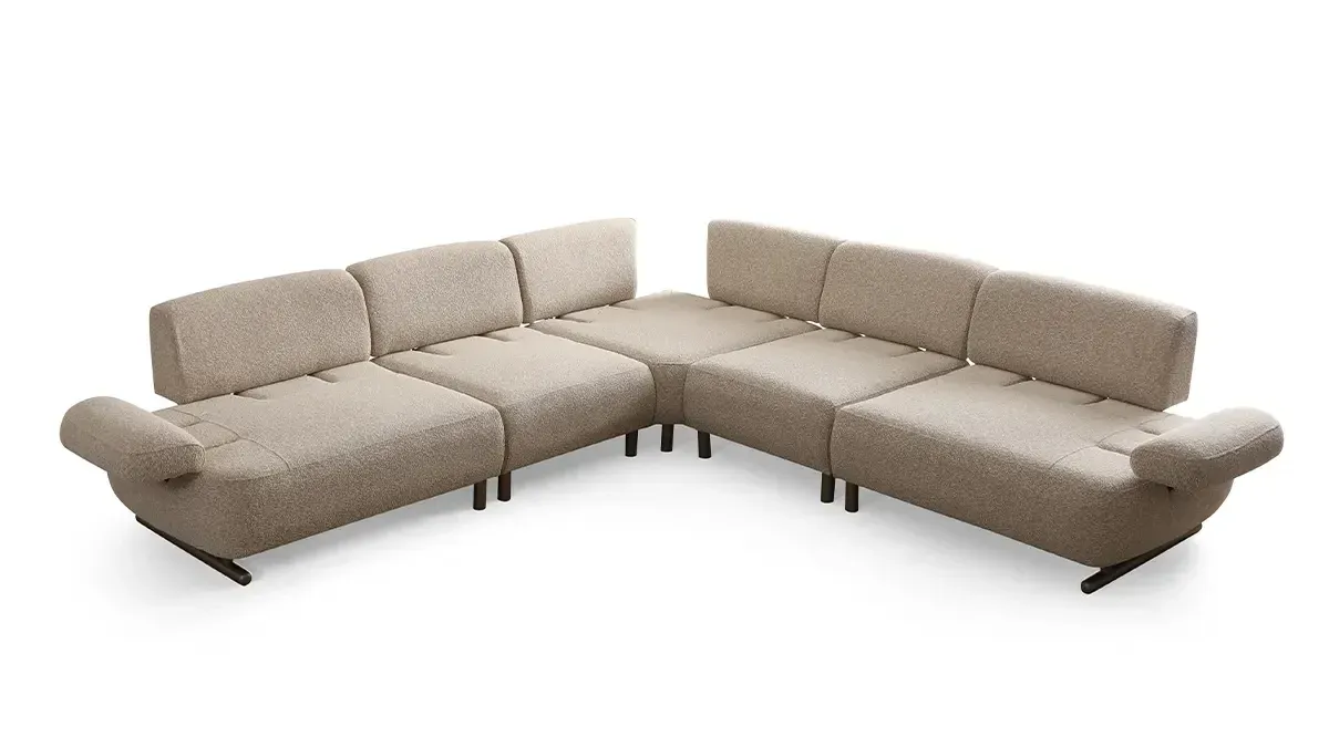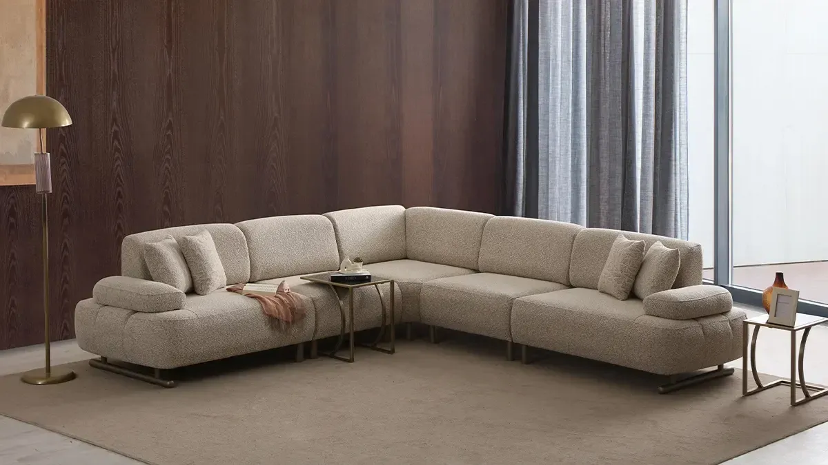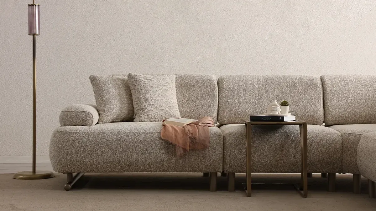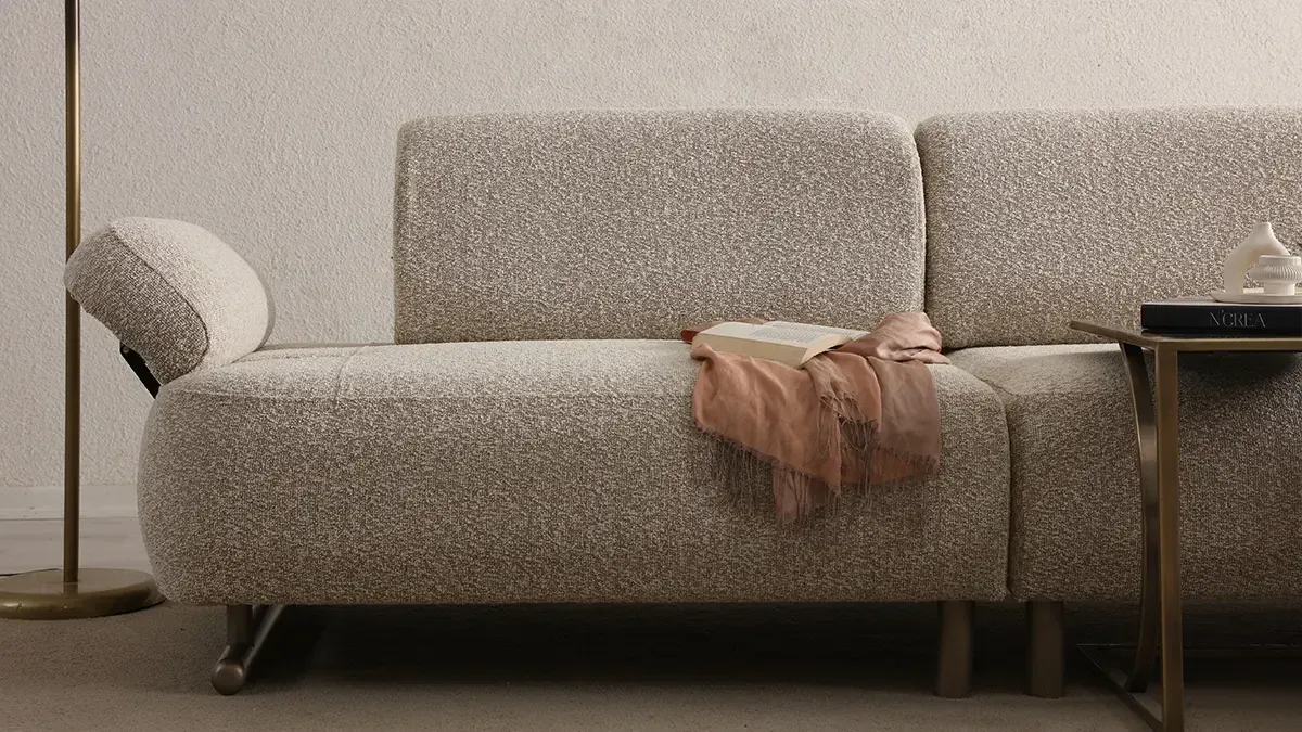 - Sofisticiran izgled sa zaobljenim linijama i neutralnom teksturom tkanine