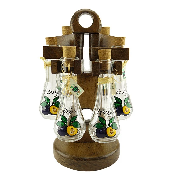 DETALJNIJE Set od 6 čokanjčića. Čokanji su oslikani akrilnim bojama. Materijal: Staklo Dimenzije stalka: 21 x 20 cm Cokanj 11.5 cm Zapremina: 0,05 – 0,08 l