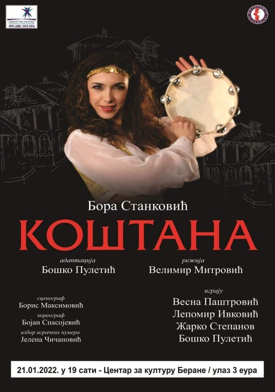 Predstava „Koštana“ temelji se na istoimenoj drami Borisava Stankovića i jedna je od najpoznatijih narodnih priča srpske književnosti i pozorišne tradicije. Radnja prati mladu i lepu Koštanu, koja svojim šarmom i pesmom očarava sve u selu, izazivajući ljubav, strasti, zavist i tugu. Kroz likove i njihove sudbine, predstava prikazuje život običnog naroda, njegove običaje, radosti i patnje, ali i univerzalne teme ljubavi, žrtve i nesrećne sudbine.