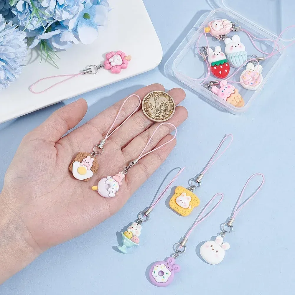 Reliable Material - Our cell phone charm consists of cute resin rabbit charm and pink string, with superb workmanship and vibrant colours. The surface is smooth, not easy to fade and can serve you for a long time.