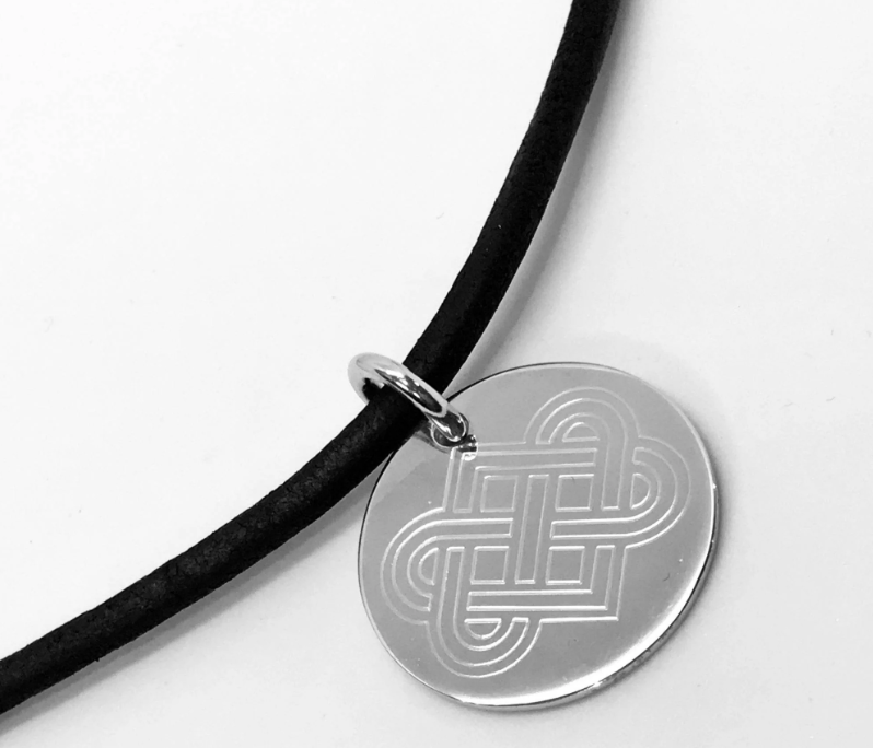 The 25mm wide disc is made from sterling silver and 1.5mm thick and can be engraved on both sides.