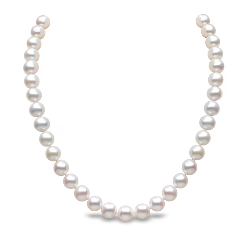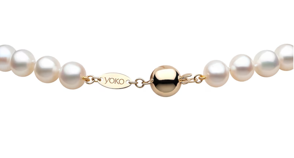 This opulent 18ct Yellow Gold pearl necklace from master British jewellers, Yoko London, is made with the highest quality 10mm cultured freshwater pearls. Measuring at 18'', this elegant necklace is a divine choice for a bridal accessory or gift.