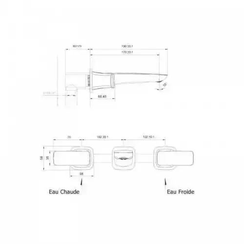 Discover the new range of wall sink faucet concep't brass. 3 holes mixer. Chromium finish. Built-in body included. Brass handle. Hot water/Cold water rectangular shape with CE and ACS ceramic head. Warranty 5 years. - Additional Information