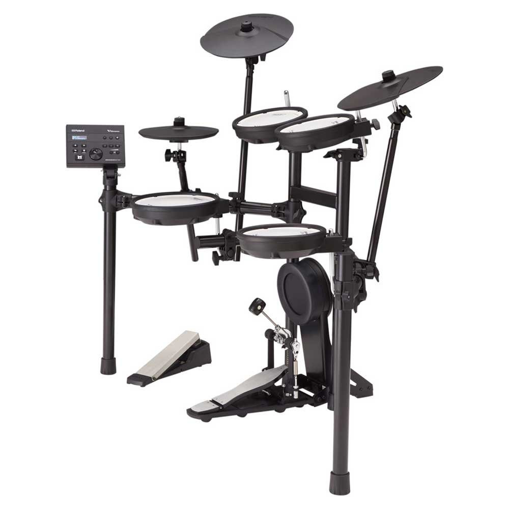 The Roland TD-07KV Electronic Drum Kit brings the renowned sound and response of Roland’s premium kits into a compact, affordable package ideal for home use. At its heart is the TD-07 sound module, loaded with expressive, professionally crafted sounds derived from Roland’s flagship TD-50 series, providing acoustic-like realism and dynamic range. The kit features a PDX-8 mesh snare pad and tom pads for a quiet, responsive feel that mimics acoustic drums, while the compact design saves space without sacrificing playability.