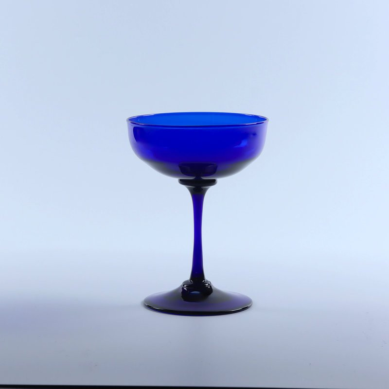 Milano Style je moderna koktel čaša od prozirnog stakla u plavoj boji, ručno izrađena za elegantne barove i proslave.