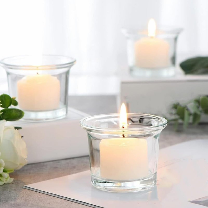 Praktičan držač za čajnu sveću izrađen od prozirnog stakla, idealan za dekoraciju i stvaranje prijatnog ambijenta.