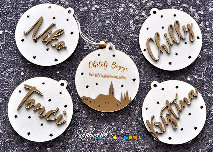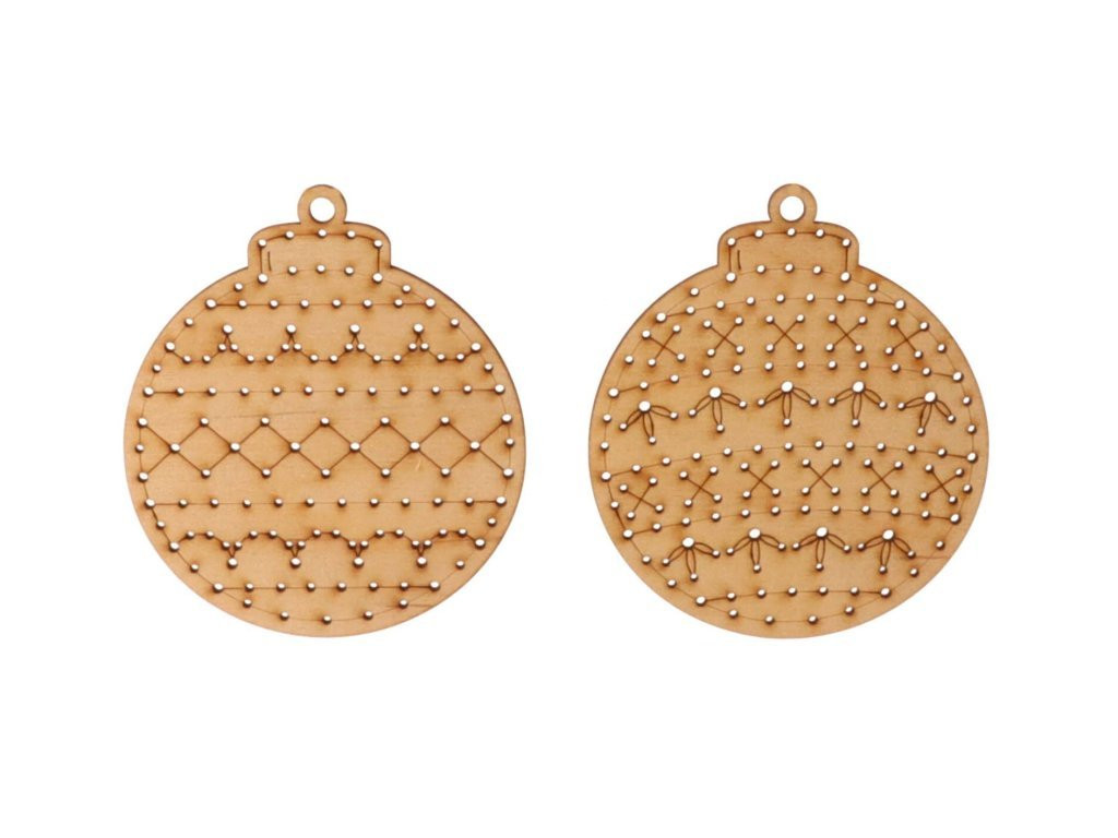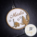 Drvena kugla sa urezanim motivom bora.