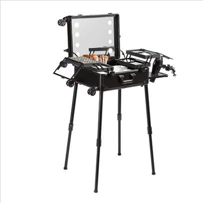 Kozmetički kovčeg sa dimenzijama kada je raspremljen 40,6 x 20,1 x 53,5 inča / 1030 x 510 x 1360 mm, opremljen sa 4 police za odlaganje, pogodan za čuvanje različite kozmetike i alata. Kovčeg takođe ima držač za četkice i panel za alate za praktično skladištenje četkica za šminku, fenova, pegle za kosu i drugih alata, što ga čini odličnim pomoćnikom za vašu organizaciju šminke. - Dodatne informacije