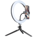 Ring light s mini tripod postoljem je kompaktno i praktično rješenje za savršeno osvjetljenje bilo gdje i bilo kada. Zahvaljujući svom prstenastom obliku i ravnomjernoj raspodjeli svjetlosti, pruža besprijekoran izgled bez nepoželjnih sjenki – idealno za snimanje, fotografisanje, video pozive i šminkanje.
