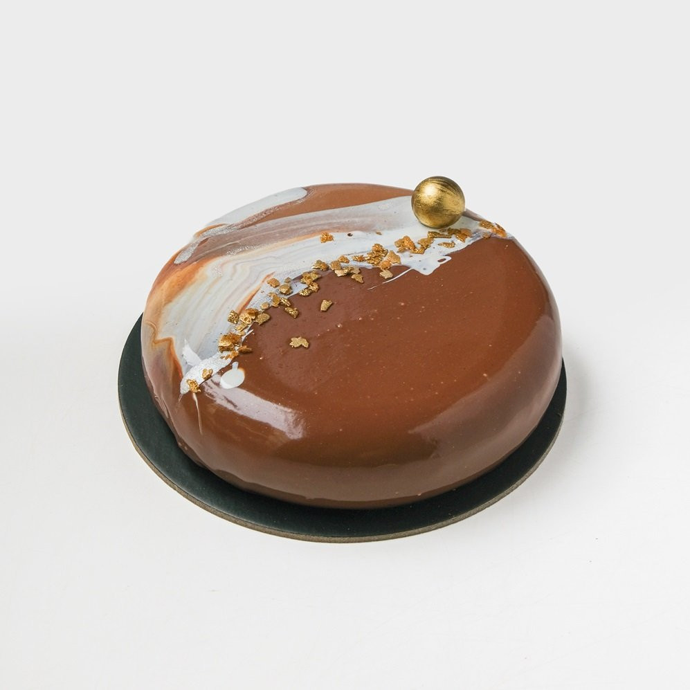 OPIS: Penušavi mus od crne Callebaut čokolade sa 70% kakaoa, hrskava lešnik pralina i mekana korica sa lešnikom. ALERGENI: gluten, jaja, mleko, laktoza, soja lecitin, lešnik. PORCIJE: 5-9 parčića - Dodatne informacije