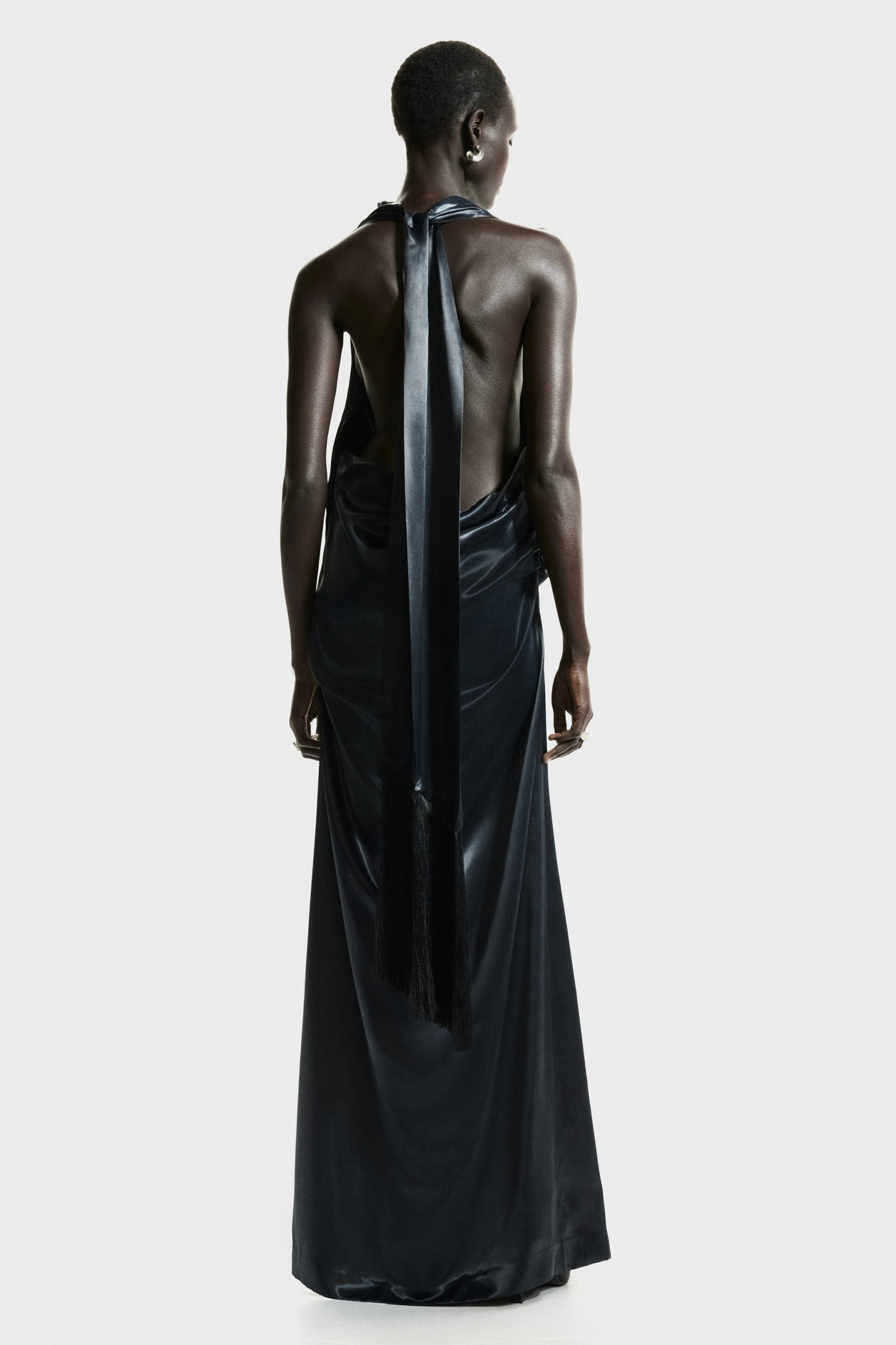 Opis: Crna, Jednobojno Dužina: Dugo Dužina rukava: Bez rukava Uklopi: Regular fit Stil: Drapirano, Prorez Vrsta okovratnika: Drapiran izrez, Halter izrez Kolekcija: HOLIDAY 2025 Država proizvodnje: Kina Godina proizvodnje: 2025 Informacije o skupljanju: Skupljanje pri održavanju: Do 2% po širini, Do 2% po dužini - Dodatne informacije