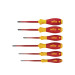 Set odvijača sa Sdrškama dizajniran je za profesionalce koji zahtevaju preciznost, izdržljivost i ergonomiju pri radu Tehnologija omogućava optimalan prenos snage uz minimalan zamor ruku, dok su kaljeni čelični vrhovi otporni na habanje i omogućavaju sigurno prijanjanje u šrafove Materijal oštrice hrom-vanadijum-molibden (CrVMo) čelik za maksimalnu izdržljivost Površinska obrada, crni fosfatirani vrh za precizno prijanjanje Ergonomski oblikovana drška za udoban i siguran rad