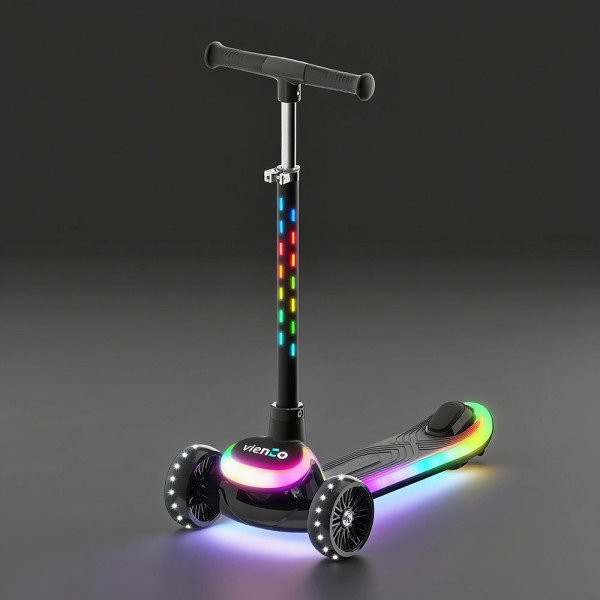 VIENTO Svetleći Trotinet – Stil, Brzina i Zabava u Jednom! Otkrijte novu dimenziju vožnje uz VIENTO svetleći trotinet! Ovaj moderan i lagan trotinet dizajniran je za maksimalnu udobnost, sigurnost i stil. Glavne karakteristike: LED osvetljenje – Točkovi sa svetlosnim efektima koji se aktiviraju kretanjem, čineći vožnju zabavnom i bezbednom čak i u sumrak! Posebno su atraktivni zbog raznobojnih lampica koje se pale i gase po čitavom trotinetu! Čvrsta i lagana konstrukcija – Kvalitetan materijal pruža izdržljivost, a istovremeno omogućava lako upravljanje. Podesiva visina upravljača. Lako sklapanje – Idealan za nošenje i odlaganje, bilo kod kuće ili u automobilu. Glatka i stabilna vožnja – Kvalitetni točkovi i pouzdani ležajevi omogućavaju udobno klizanje po svim vrstama površina. VIENTO svetleći trotinet nije samo prevozno sredstvo – to je način da se istaknete i uživate u svakoj vožnji! Boja:Crna Potrebne su 3xAA baterije Nosivost: 50kg Uzrast: 3+