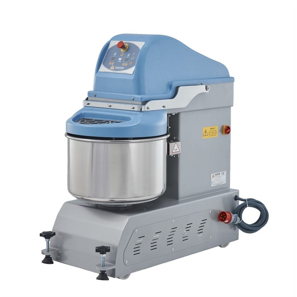 Spiralni mikser za testo ima zapreminu posude (kapacitet) 22 litara. Spiralni mikseri namenjeni su za profesionalnu upotrebu u oblasti pekarstva i ugostiteljstva. Koriste se za pripremu pre svega testa, ali se mogu koristiti i za pripremu drugih vrsta proizvoda, zamenjujući ručni rad mehaničkim sistemom. Na ovaj način omogućava se proizvodnja većih količina testa u kontinuitetu. Sastoje se od posude za sastojke i alata za mešanje (spirale). Tehničke karakteristike električnog miksera za testo: Kapacitet brašna: 8 kg Kapacitet posude: 22 litra Brzina mešanja: 120/220 o/min Brzina posude: 11/19 o/min Napon: 220V / 50Hz Snaga: 1.5 kW Dimenzije mašine: 720 × 500 × 920 mm Težina: 90 kg.