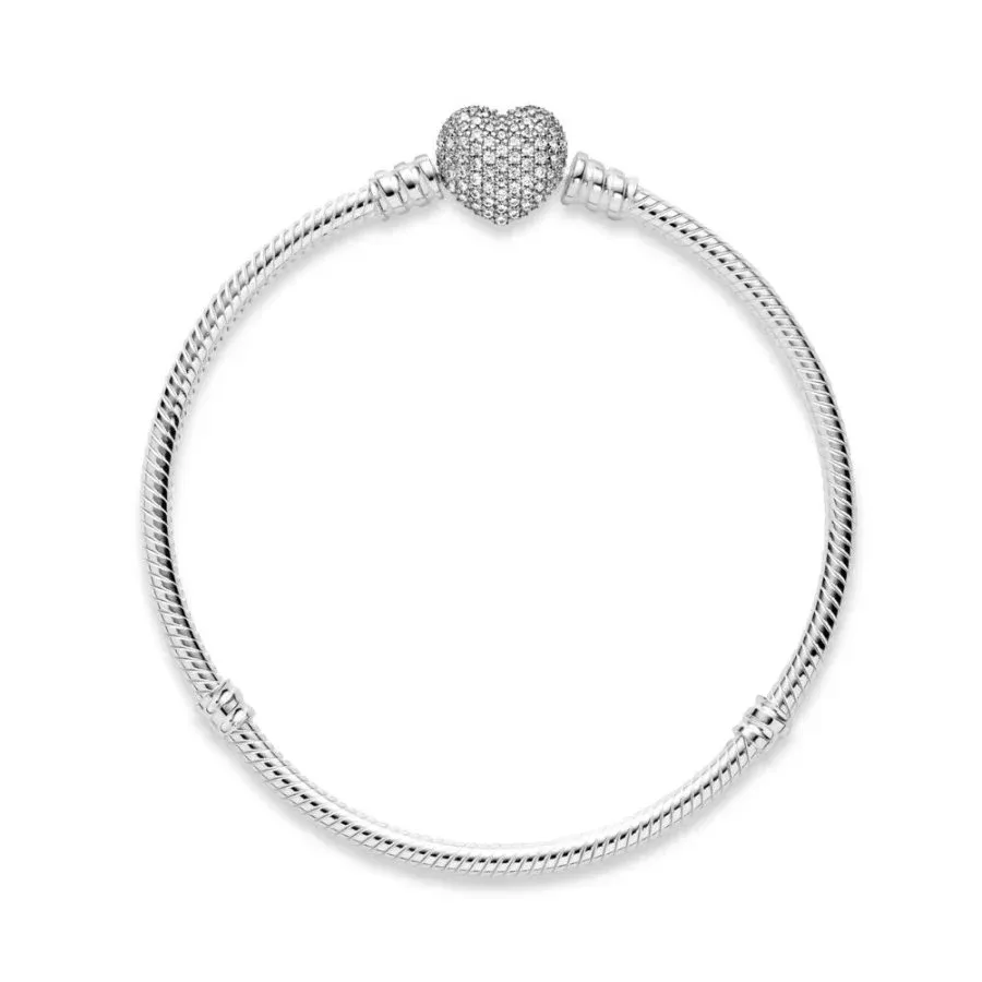 Dodaj sjaj i romantiku svojim privescima uz ovu zadivljujuću verziju ikonične Pandora narukvice sa zmijskim lancem. Ručno obrađena od srebra, ovaj elegantni stil ima dvostranu kopču u obliku srca, sa jedne strane ukrašenu blistavim Pavé© kamenčićima, a sa druge urezanim Pandora logoom. Jednostavno okreni kopču i kreiraj dva različita izgleda. Nosi ovu narukvicu samu ili je napuni omiljenim Pandora privescima. - Additional Information