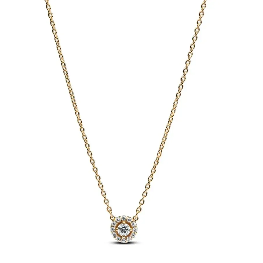 Klasika se susreće sa savremenošću u ogrlici sa okruglim pavé oreolom sa 14k pozlatom. Ogrlica ima fiksni privezak, gde oreol od pavé kupastog cirkona okružuje veći kamen, izdignut za dodatnu dimenziju. Dizajnirana da odražava maksimalan sjaj, osvetli svoj izgled ovim sjajnim priveskom ili ga pokloni posebnoj osobi. - Additional Information