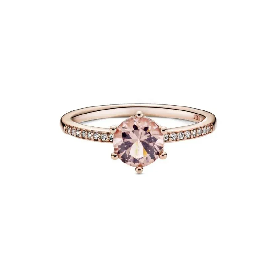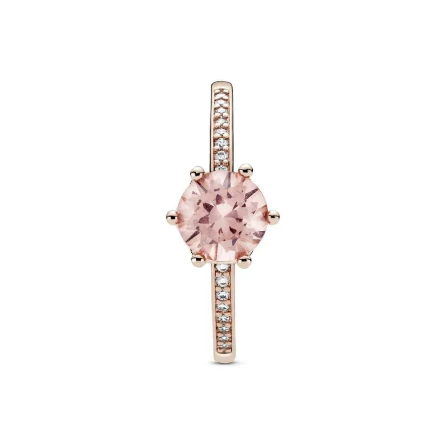 Prsten sa kamenom Roze svetlucava kruna uneće notu glamura u tvoj stil. Ručno završen od 14k roze pozlate, ovaj roze prsten sa krunom je inspirisan Pandora O monogramom u obliku krune. Prsten krase jedan blistavi roze kristal utisnut u oblik krune, prozirni cirkoni na vrhovima krune i po obodu prstena, sa obe strane krune. Zahvaljujući ovom komadu dostojnom krunisanih glava, privlačićete pažnju kuda god da krenete
